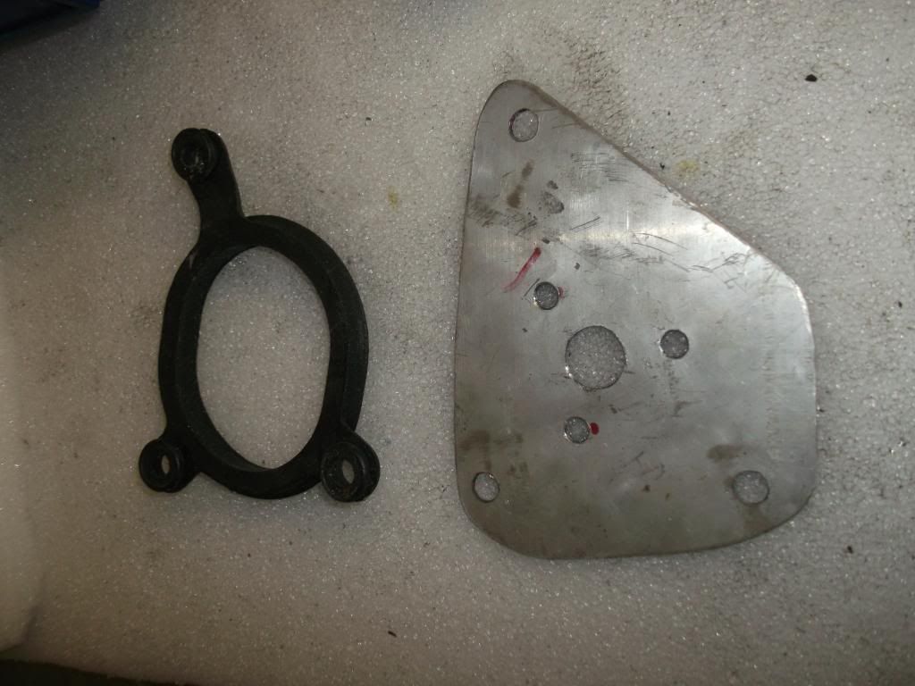 Next make a plate that will fit the car studs (use gasket for template) and the new motor studs.