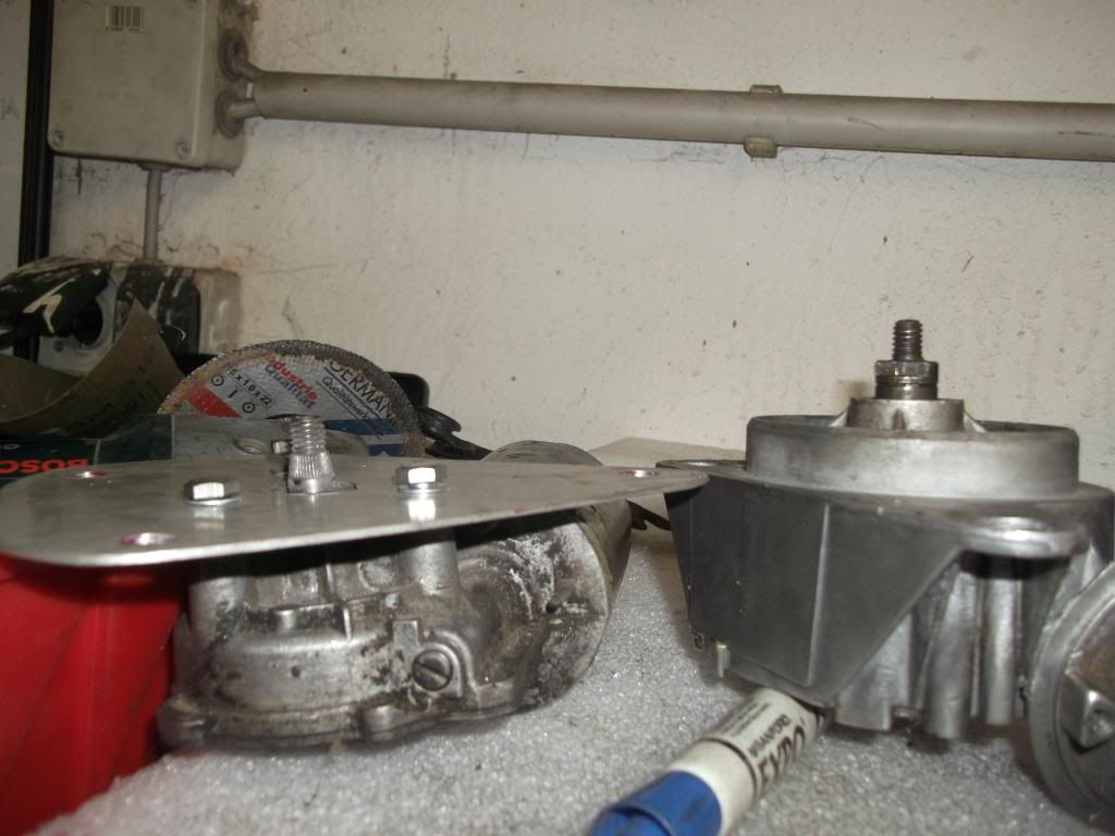 The nice thing about the vw motor is it has splines on the shalft so you can fit the arm at any postion. So when you make the plate dont worry about motor location just get it in the middle